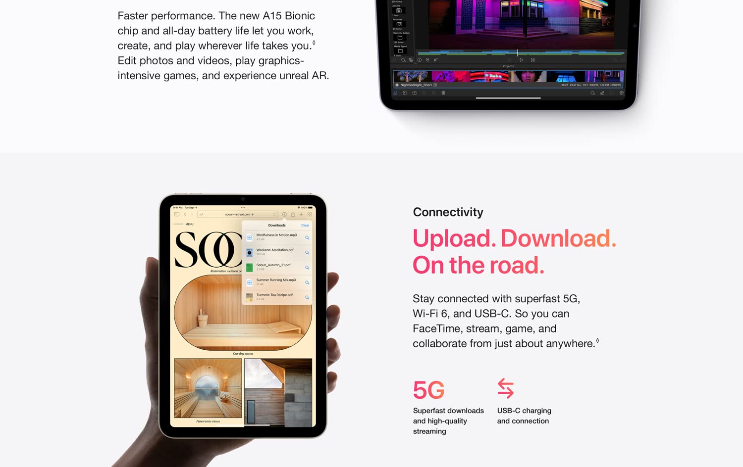 • 8.3-inch Liquid Retina display with True Tone and wide color