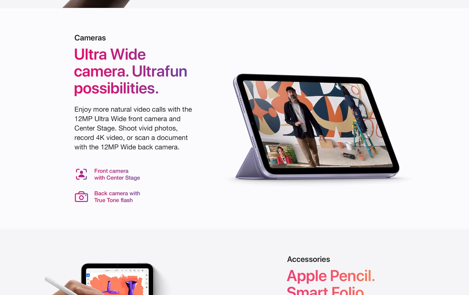 12MP Wide camera with Center Stage, Smart HDR 3 and 4K video