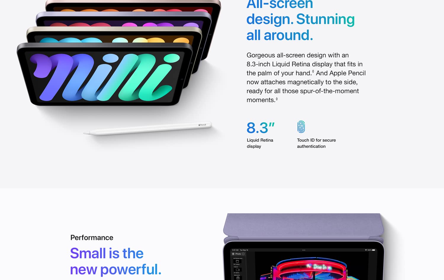 • 8.3-inch Liquid Retina display with True Tone and wide color