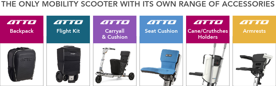 MovingLife develops life-changing solutions for people with mobility needs. The ATTO is a contemporary mobility scooter that combines smart design with rugged functionality - without compromising on style. ATTO is optimised for travel by any mode of transportation, from Compact Cars, to Trains, Cruise Ships and Airplanes. With its lightweight usability and easy transition between regular, compact and trolley modes, ATTO is the ideal companion to take with you on any journey. The world doesn't stop at your corner shop and neither should you.