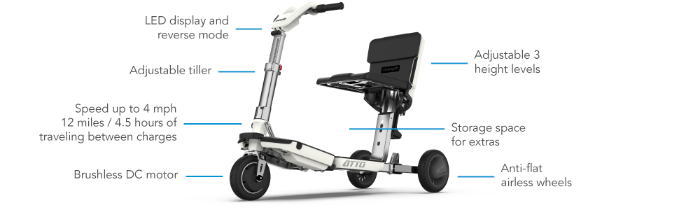 【Sports&Outdoors】ATTO Folding Travel Powered Mobility Scooter by MovingLife, Full-Size Portable Electric Scooter